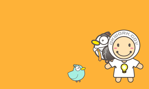 因為我們對於整個專案大致的企劃構想是「菜鳥大變身」,加上配合勞工局網站本身就有的可愛娃娃OKMAN,所以在討論過後,小枚設計了一隻不管是顏色或是眼神都很菜的菜鳥,以及經過OKMAN調教、偷自蔡康永肩膀鳥造型的博士鳥,做為活動網站設計的假圖使用,也幫助我們在計畫書或是提案簡報中闡述我們的想法。